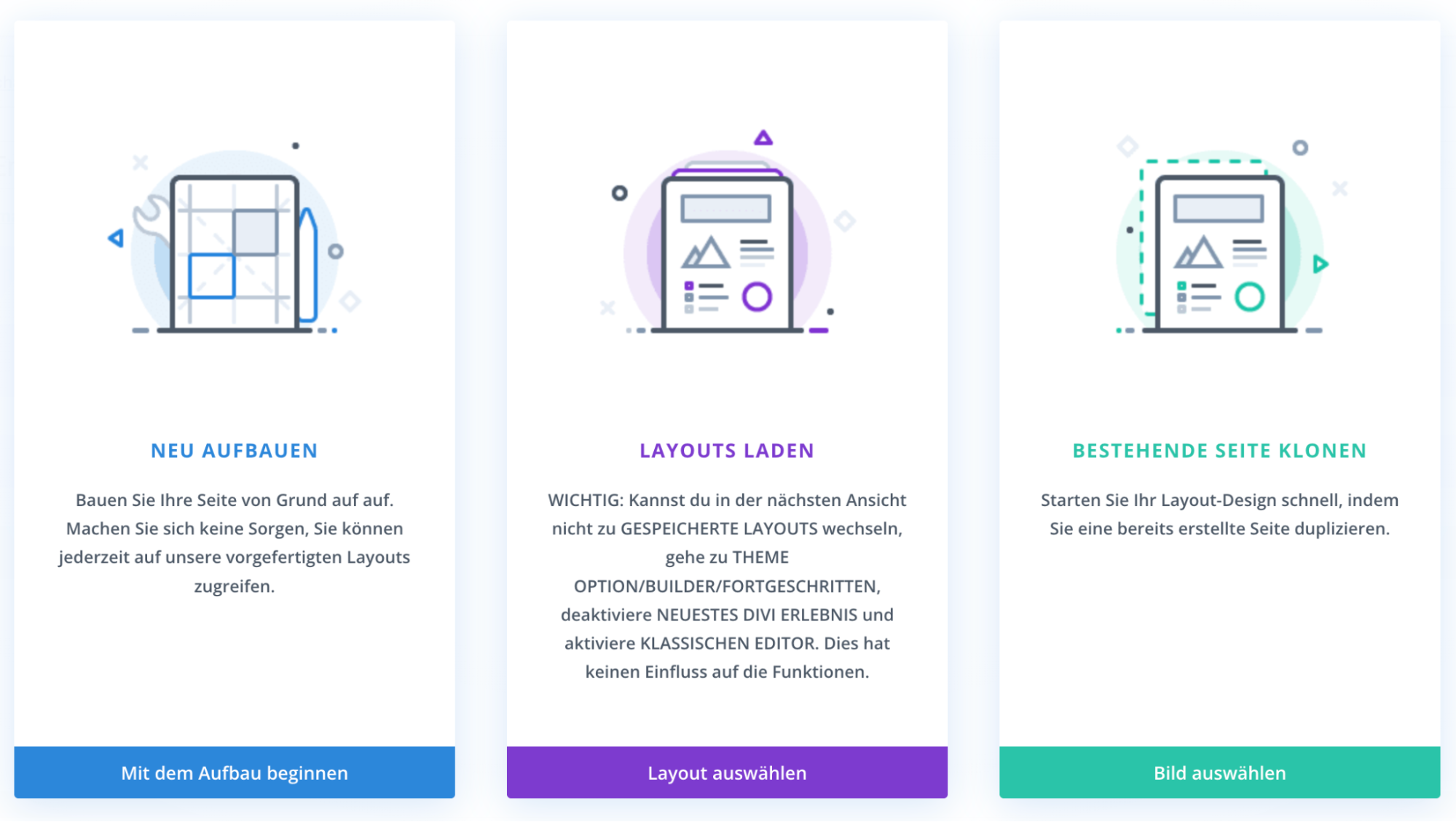Alle drei nutzen dieselbe Logik: Sektionen, Zeilen, Module. Was du in einem lernst, hilft dir in allen anderen.