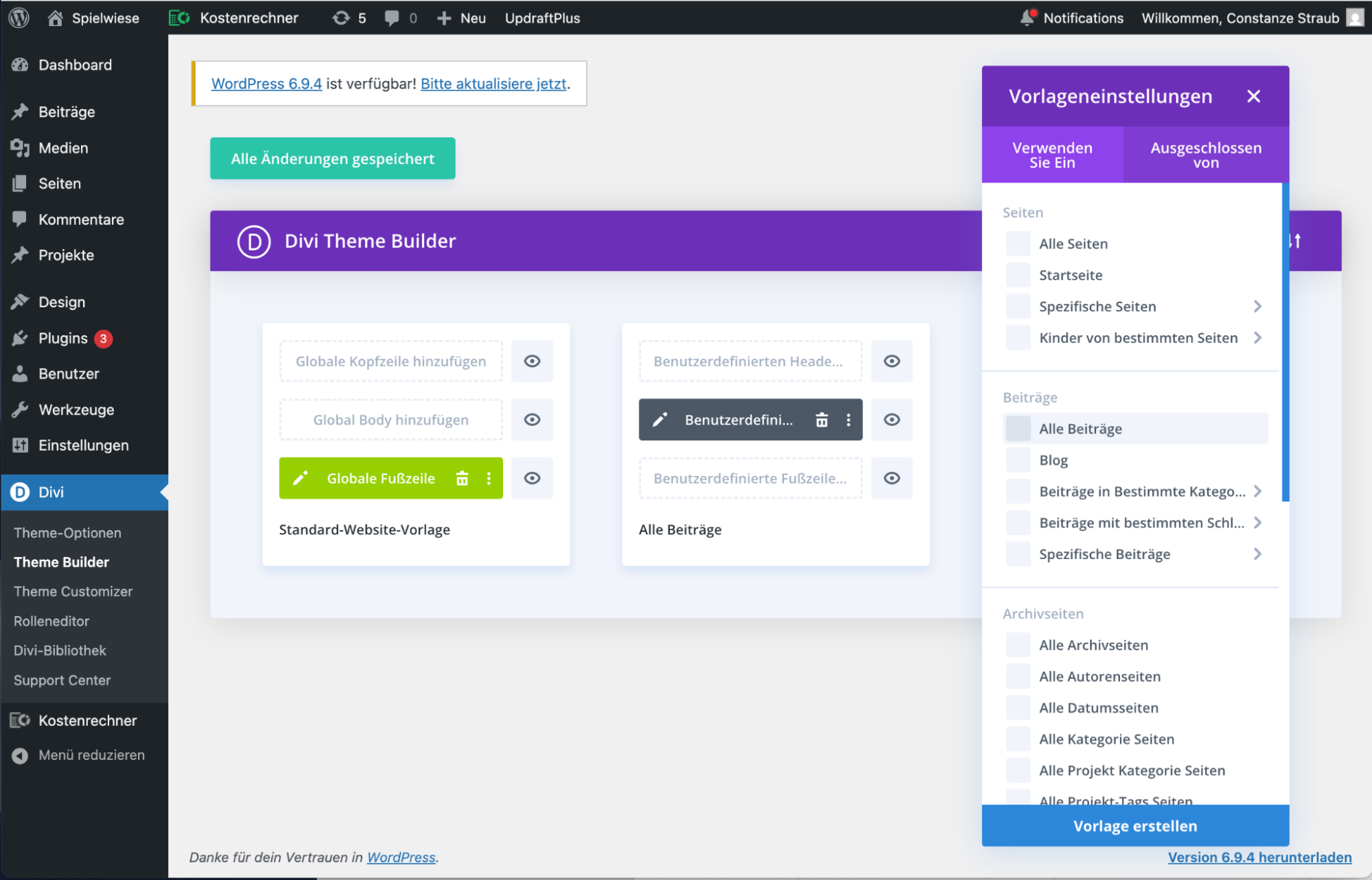 Du brauchst den Theme Builder immer dann, wenn etwas auf jeder Seite automatisch erscheinen soll, ohne dass du es einzeln einbauen musst. Die wichtigsten Einsatzgebiete: