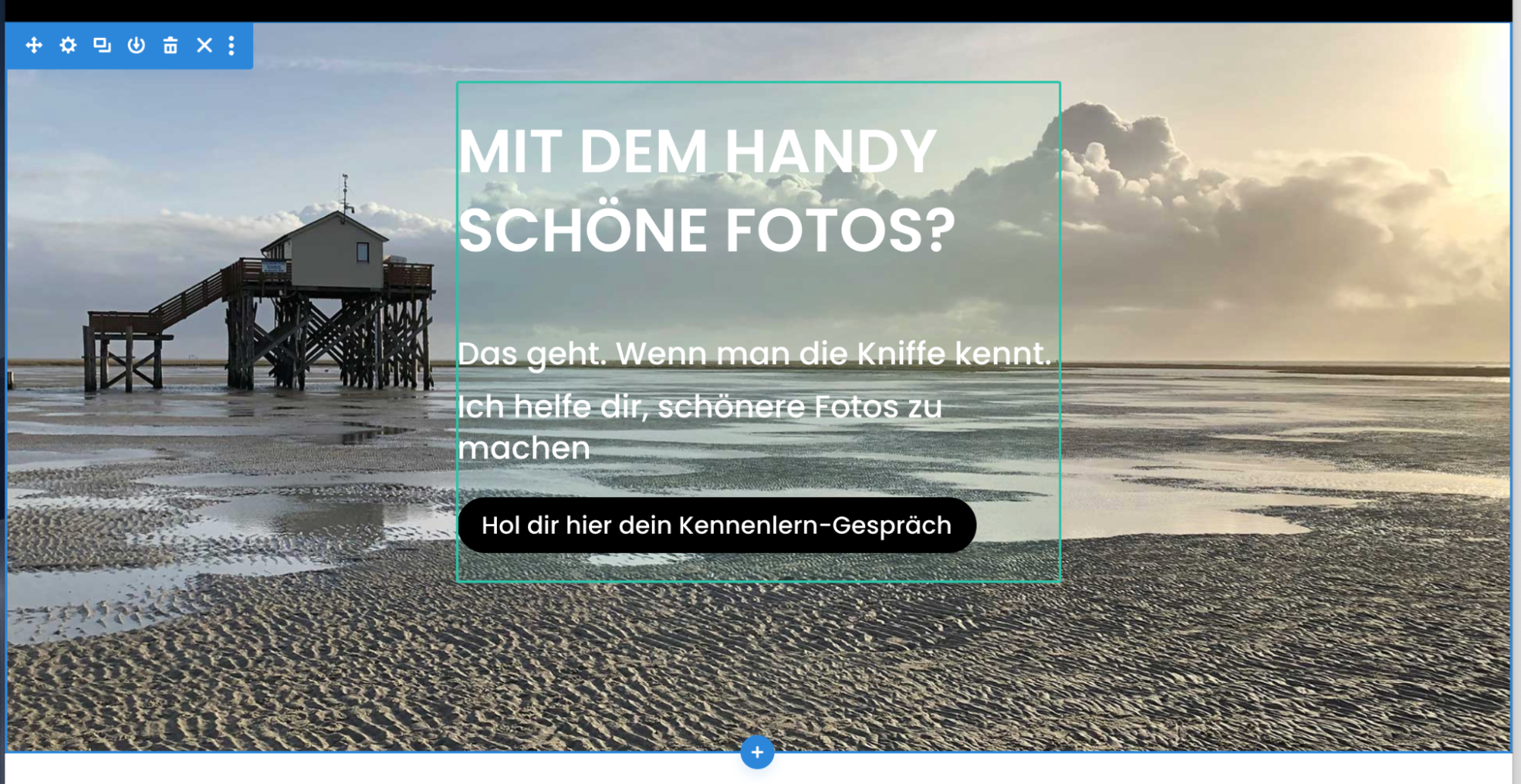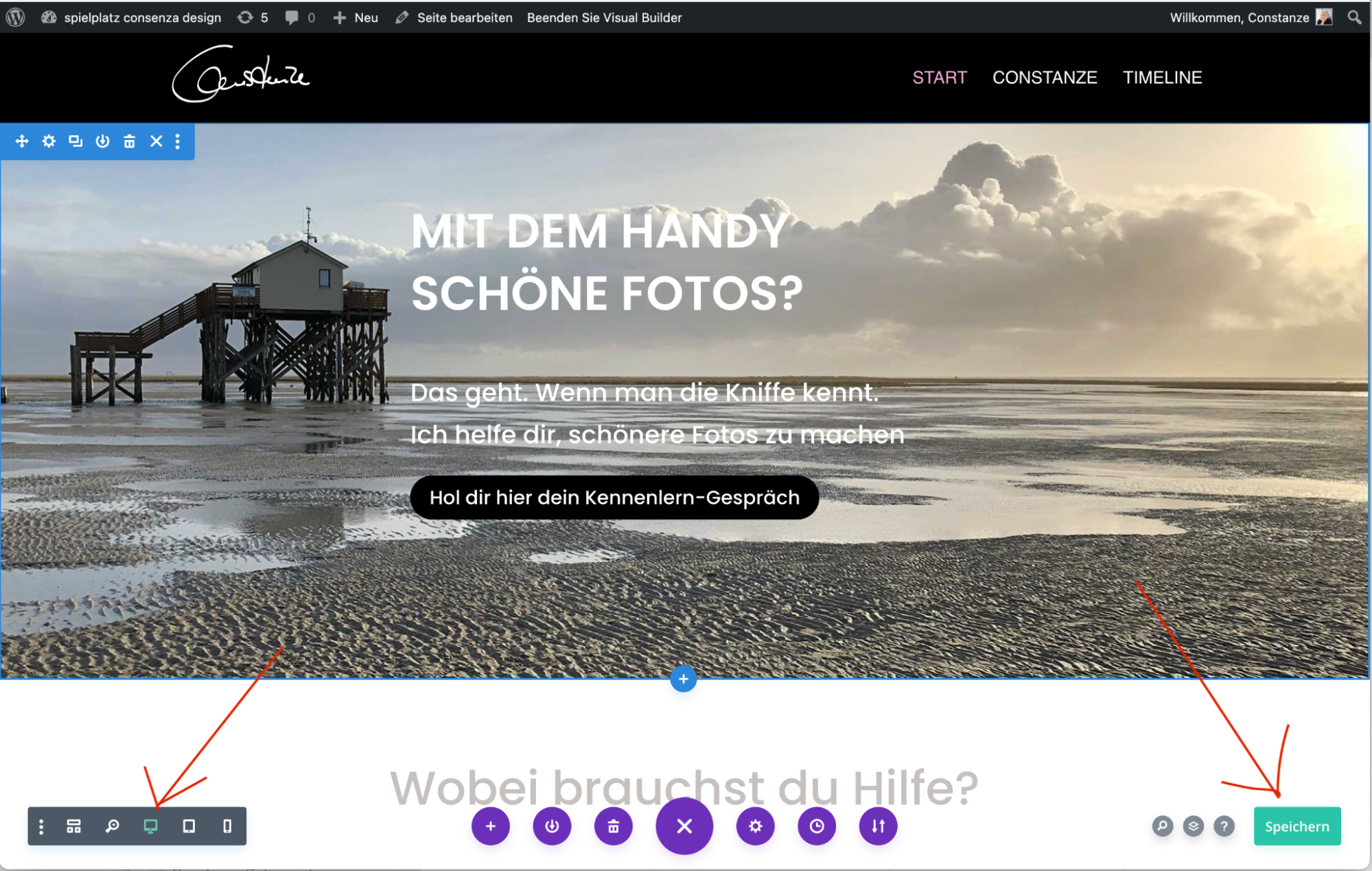 du gestaltest direkt auf der Seite, siehst sofort das Ergebnis. Dein Hauptwerkzeug für den Seiteninhalt.