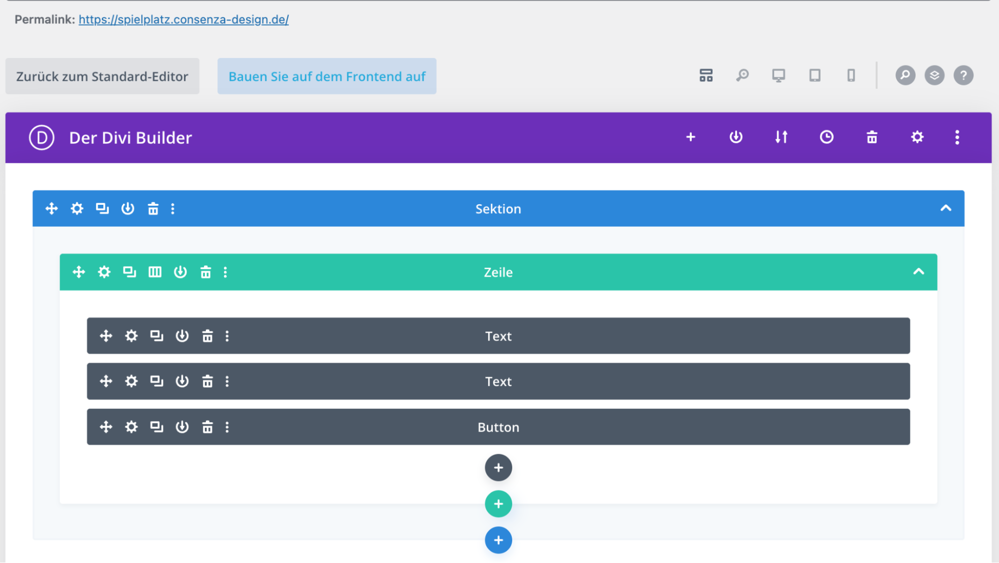 Die Gridansicht läd schneller und du kannst dort Module, Zeilen und Sektionen einfacher verschieben. Im Divi Builder (also in der Frontentansicht), funktioniert das Verschieben der Element nur schlecht und hier können schnell Fehler passieren.