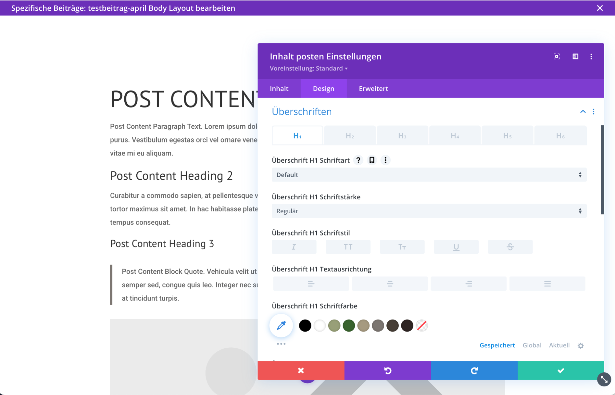 Sobald du das getan hast, stehen dir diese Farben in jedem Modul und jeder Einstellung sofort zur Auswahl – du musst nie wieder einen Hex-Code abtippen.