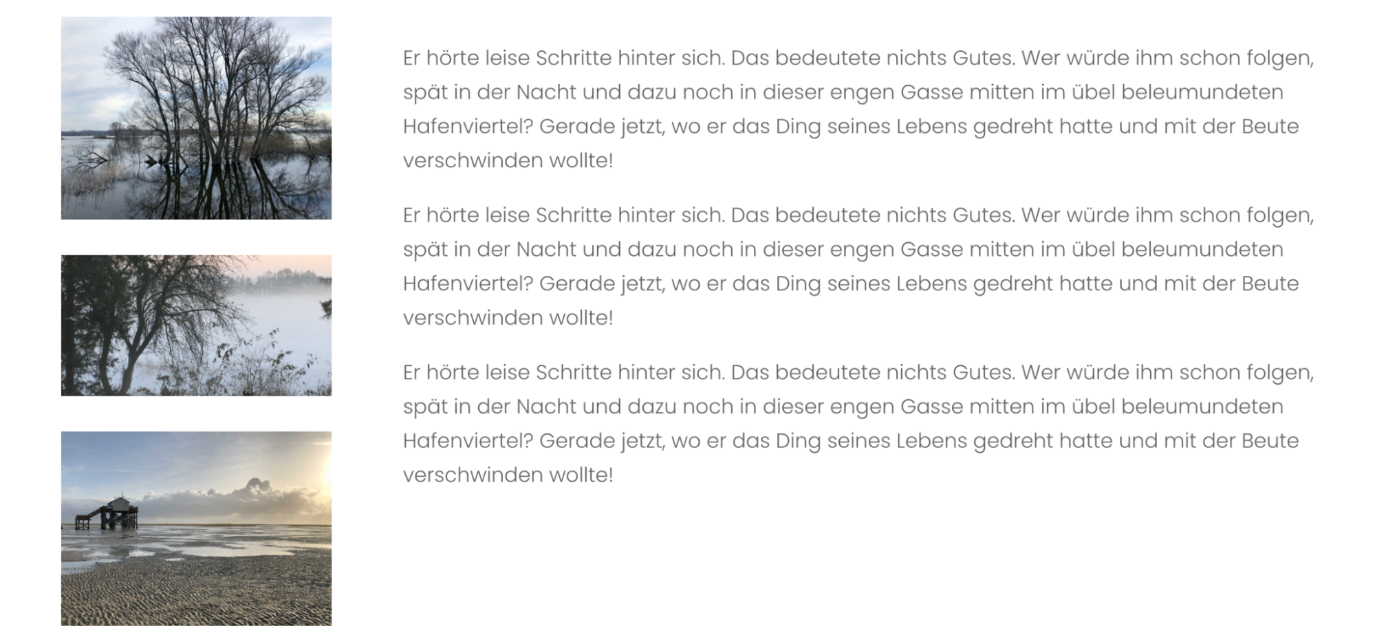 Bilder links, Text rechts – Größe, Anzahl, Abstände
